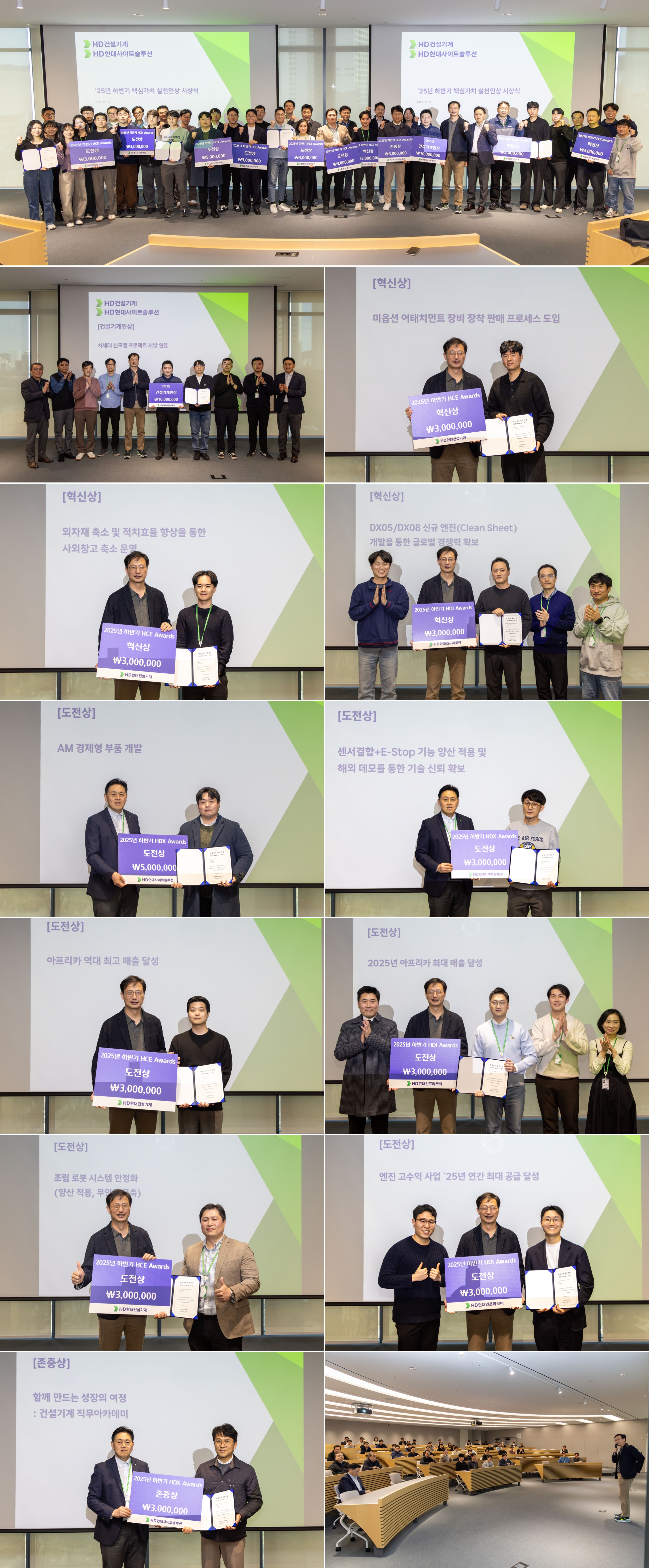 On December 12, the HD Hyundai Construction Equipment Division held its Company-Wide Awards ceremony for the second half of 2025 at the HD Hyundai Global R&D Center. This event recognized employees and departments that made significant contributions to the company's development in the second half of the year.