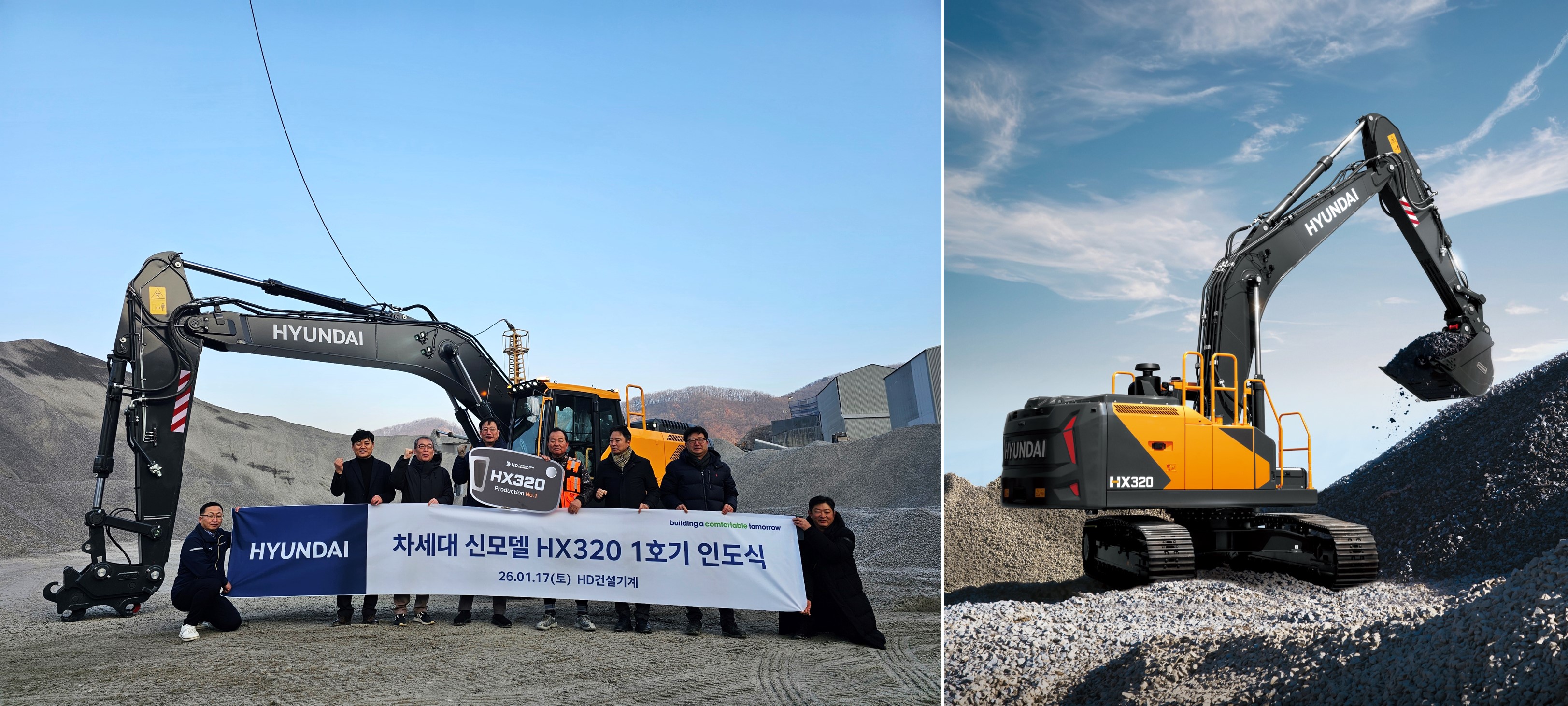 On the same day, a delivery ceremony for the first HX320L unit was also held at a quarry site in Paju, Gyeonggi Province, where an appreciation plaque and commemorative gifts, including a miniature of the Hyundai Next-Generation HX320L, were presented to Wooseong Construction Equipment, the purchaser of the first unit.