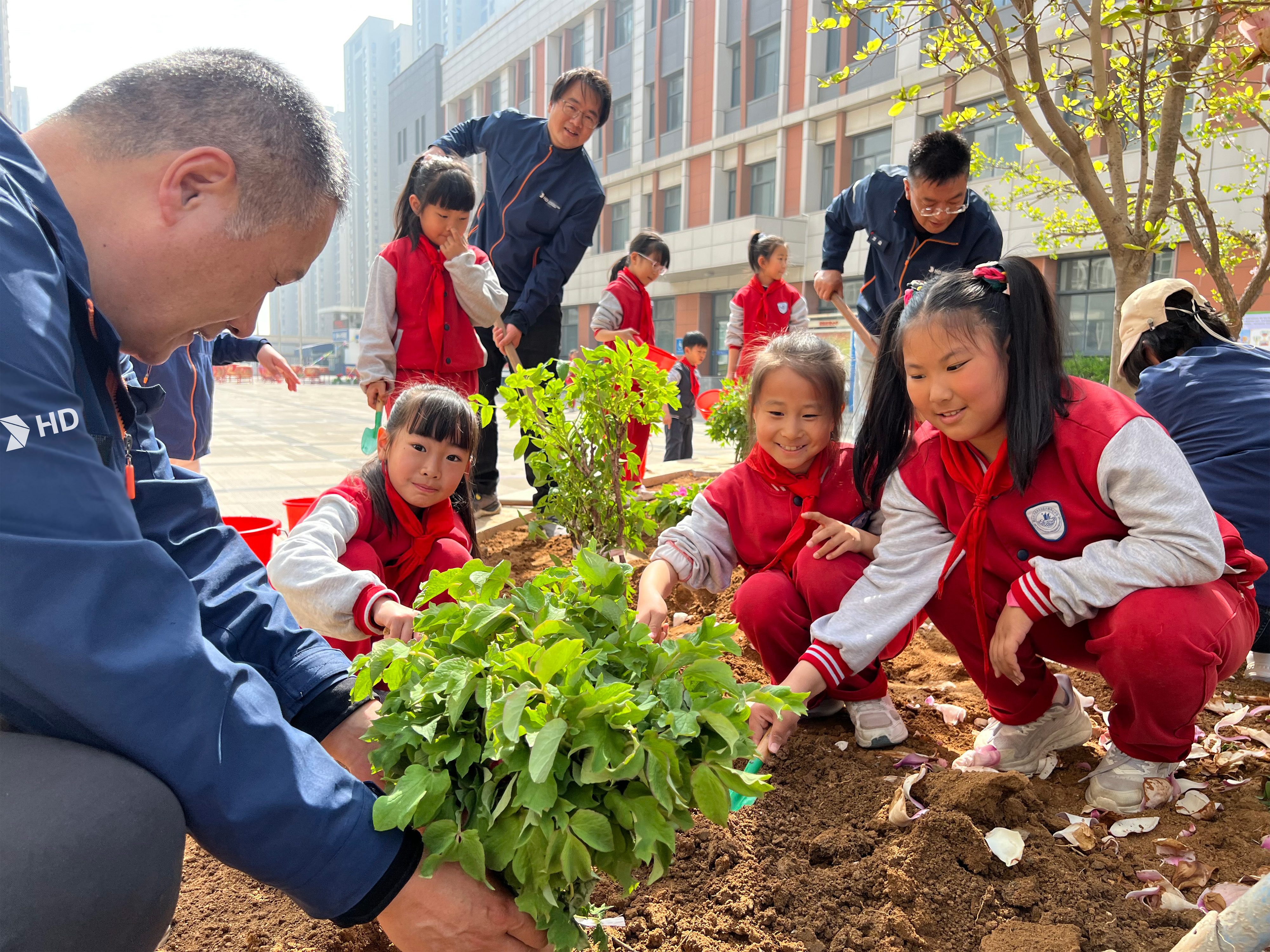 2. Employees of HD Construction Equipment China conducting biodiversity education at a nearby Hope Primary School in Yantai.